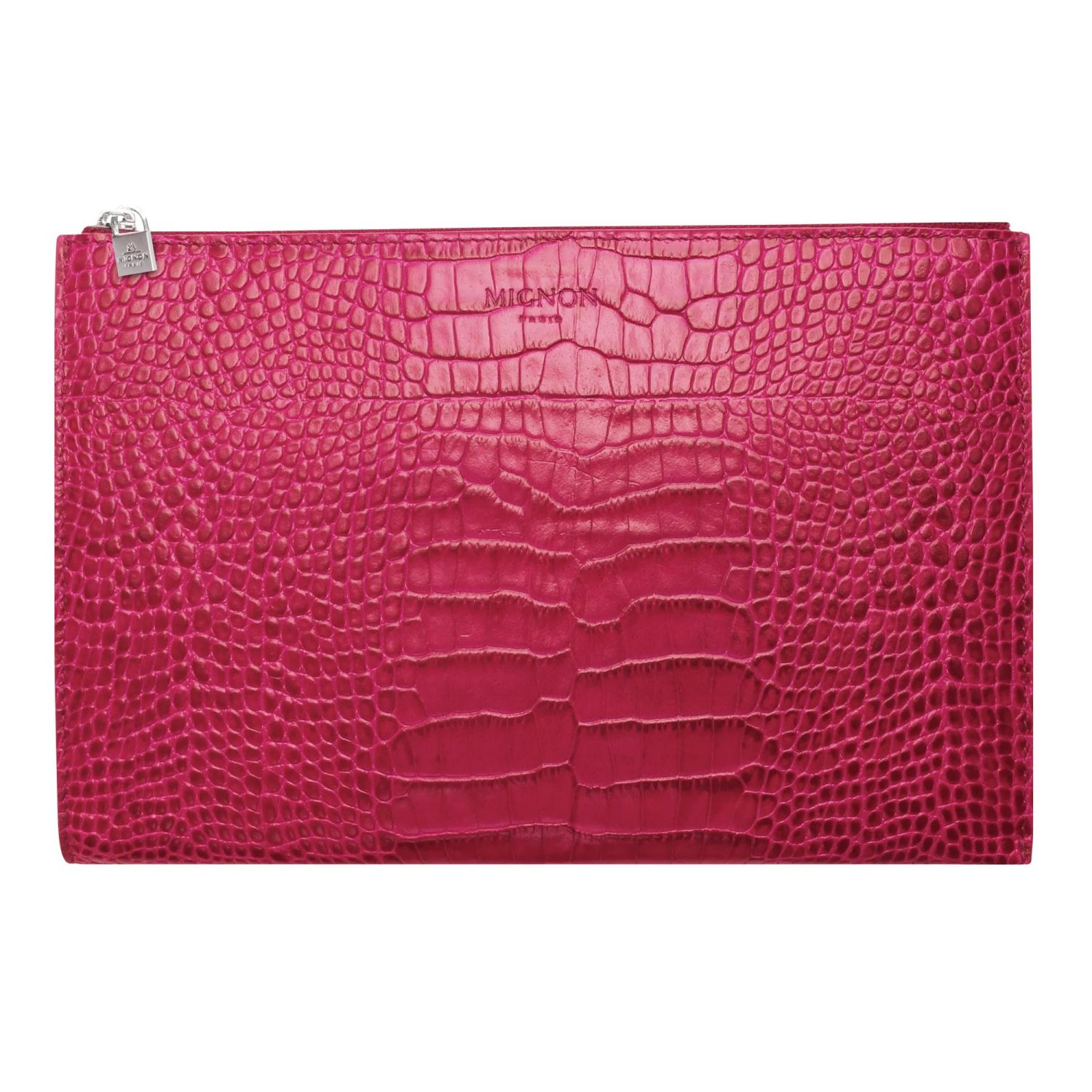 POCHETTE ZIPPEE CROCO SAVANNAH - Framboise