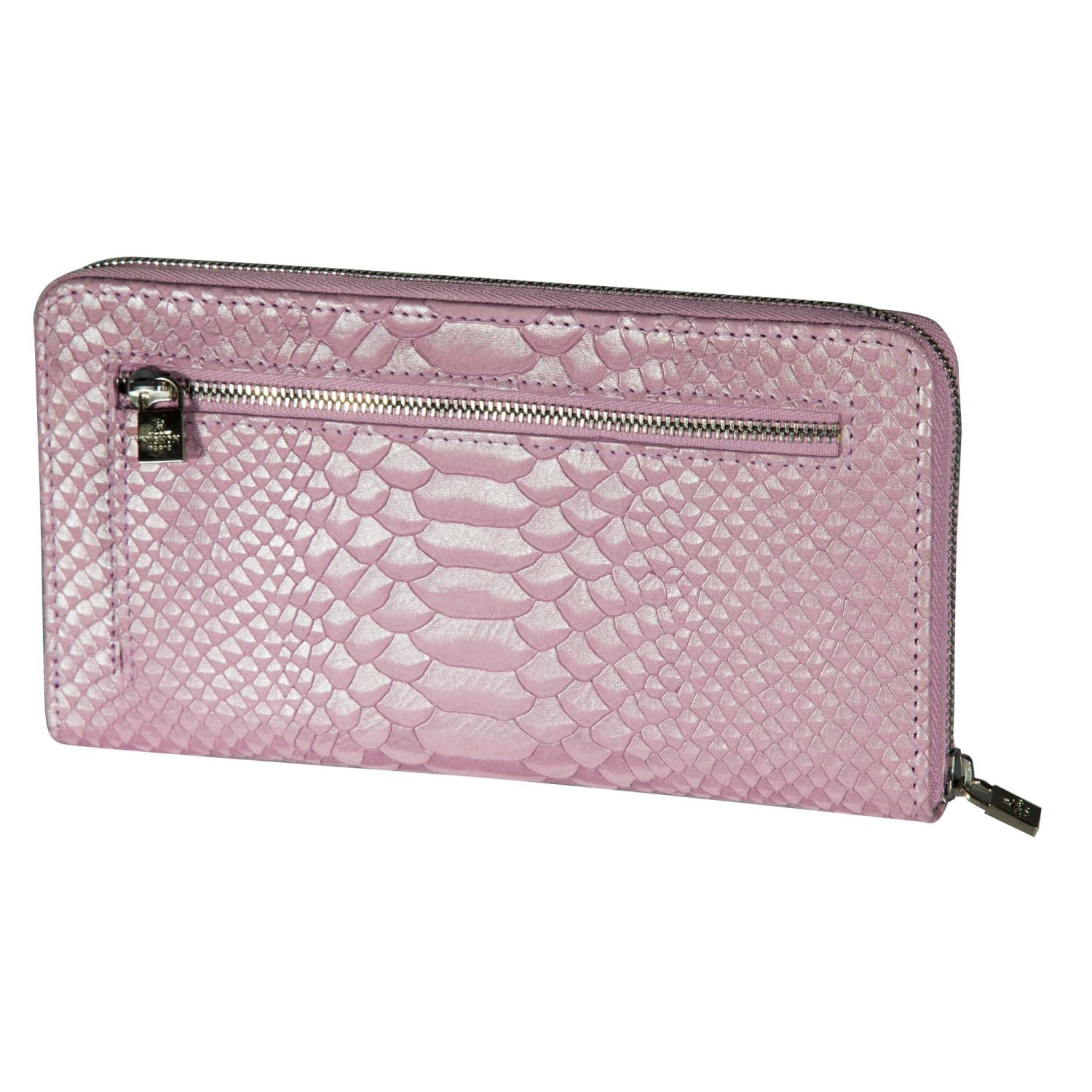 Ce portefeuille en cuir embossé écailles de python métallisé capte la lumière pour un effet chic et audacieux. Compact et pratique, il offre une poche zippée centrale pour la monnaie, deux grands compartiments pour papiers ou chéquier, plusieurs emplacements cartes et une poche zippée extérieure. L'accessoire parfait pour allier style et fonctionnalité au quotidien.